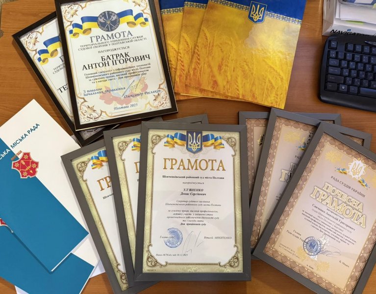 Почесною грамотою Ради суддів України: суддю Шевченківського районного суду міста Полтави у відставці Анатолія САВЧЕНКА; помічника голови суду Аллу ЯЦУРУ та помічника судді Аллу МИЛОСТЮК;