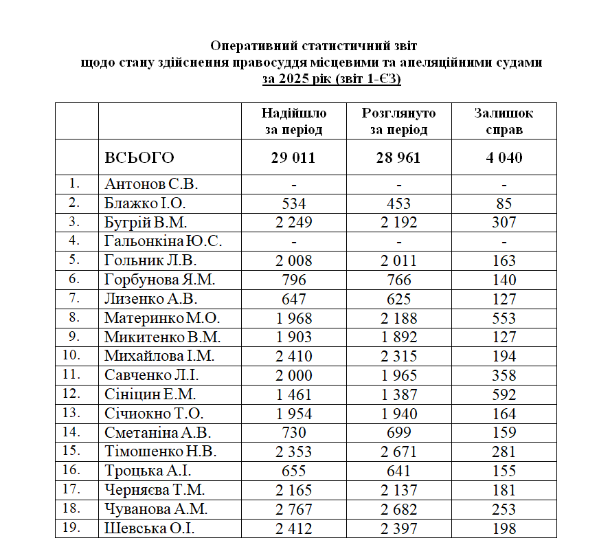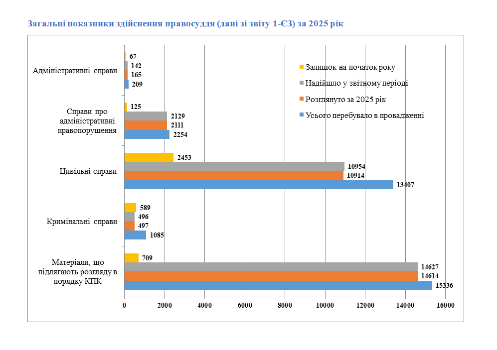В 2025 році правосуддя здійснювали 17 суддів.