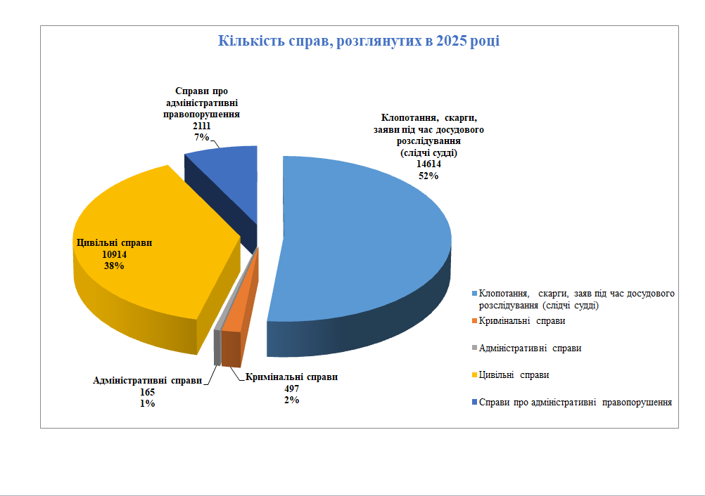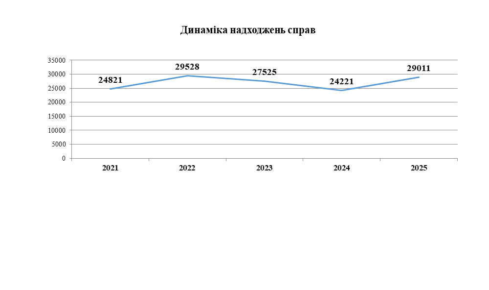 Кількість справ, що надійшла до суду за 2025 рік у порівнянні з 2021-2025 роках суттєво збільшилася.