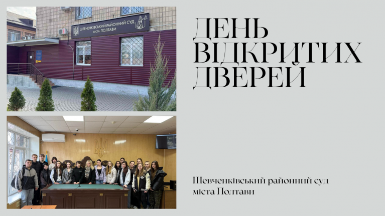 З метою покращення доступу до правосуддя в Україні та формування позитивного іміджу суду та судової влади в цілому, підвищення обізнаності молоді та громадян про діяльність судових органів, формування у них поваги до права, а також для укріплення довіри до судової влади 27 березня 2026 року в Шевченківському районному суді міста Полтави було проведено День відкритих дверей.